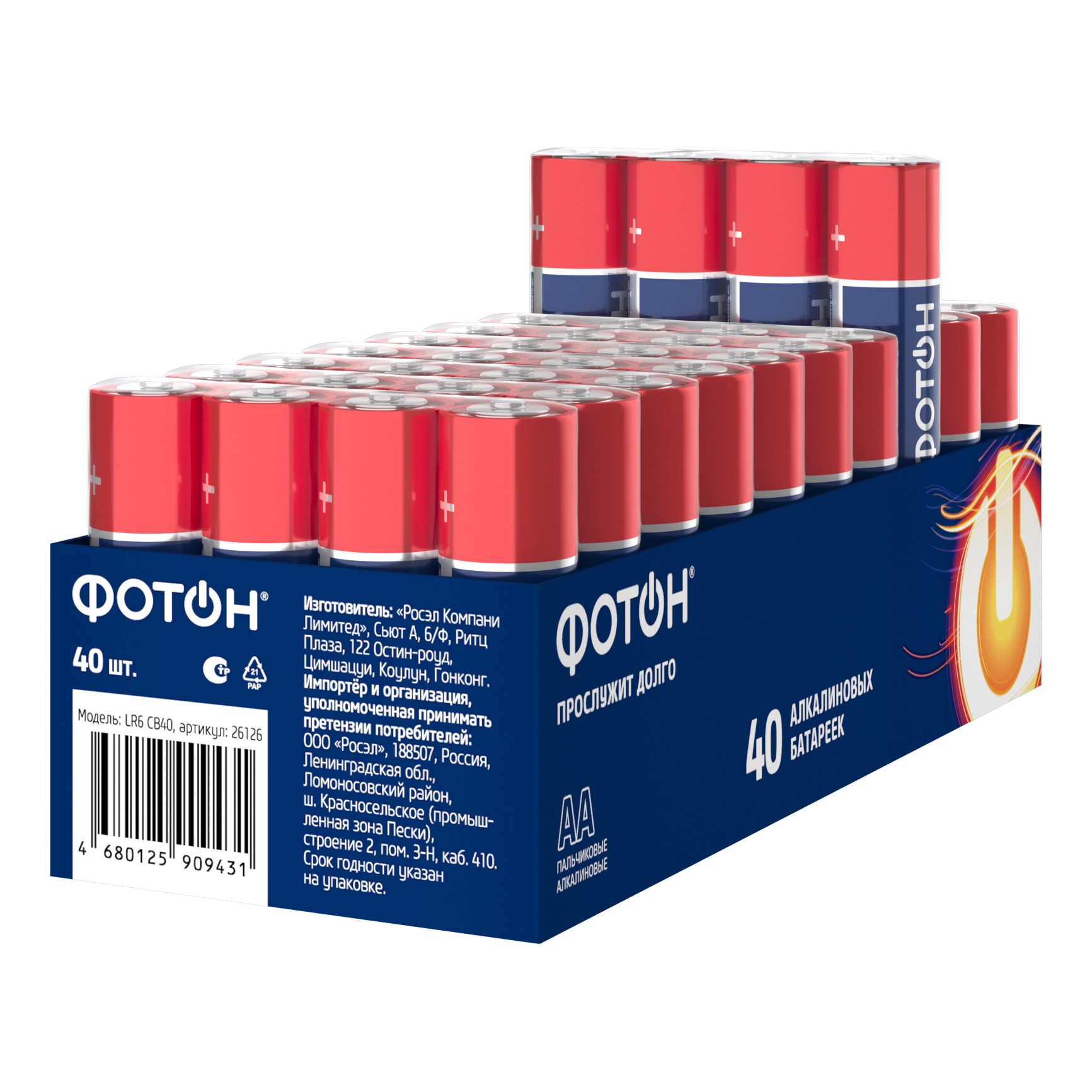 40 алкалиновых батареек LR6 (AA, «пальчиковые»). Выгодный набор для организаций и домохозяйств: игрушки, техника, системы безопасности. Оптимальная цена за единицу в крупной упаковке.