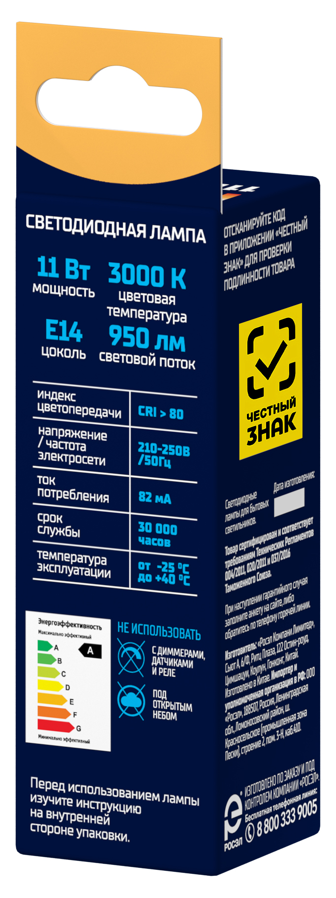| Цветовая температура, К | 3000 (теплый свет) |