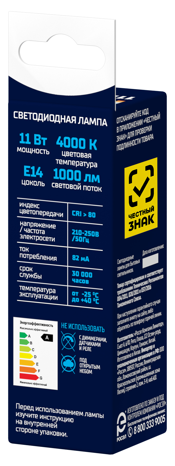 | Цветовая температура, К | 4000 (дневной свет) |
