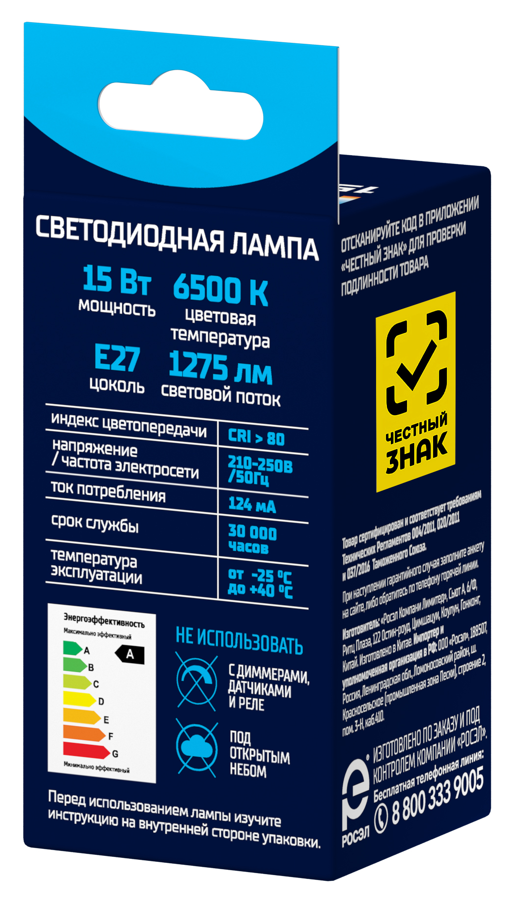 | Цветовая температура, К | 6500 (холодный свет) |
