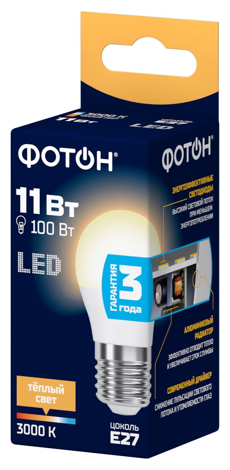 | Цветовая температура, К | 3000 (теплый свет) |
